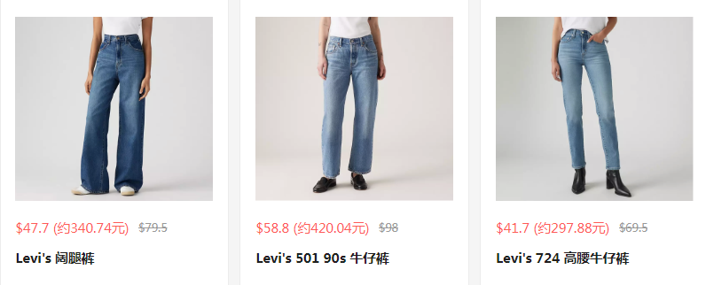 Levi's 現(xiàn)有 全場無門檻 額外6折 Rose 同款牛仔褲$28。