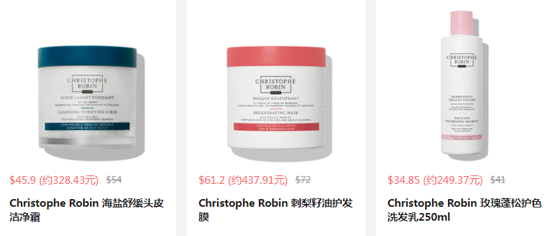 Christophe Robin US 現(xiàn)有 全場洗護熱賣 正價無門檻8.5折+滿$45額自選洗護小樣。